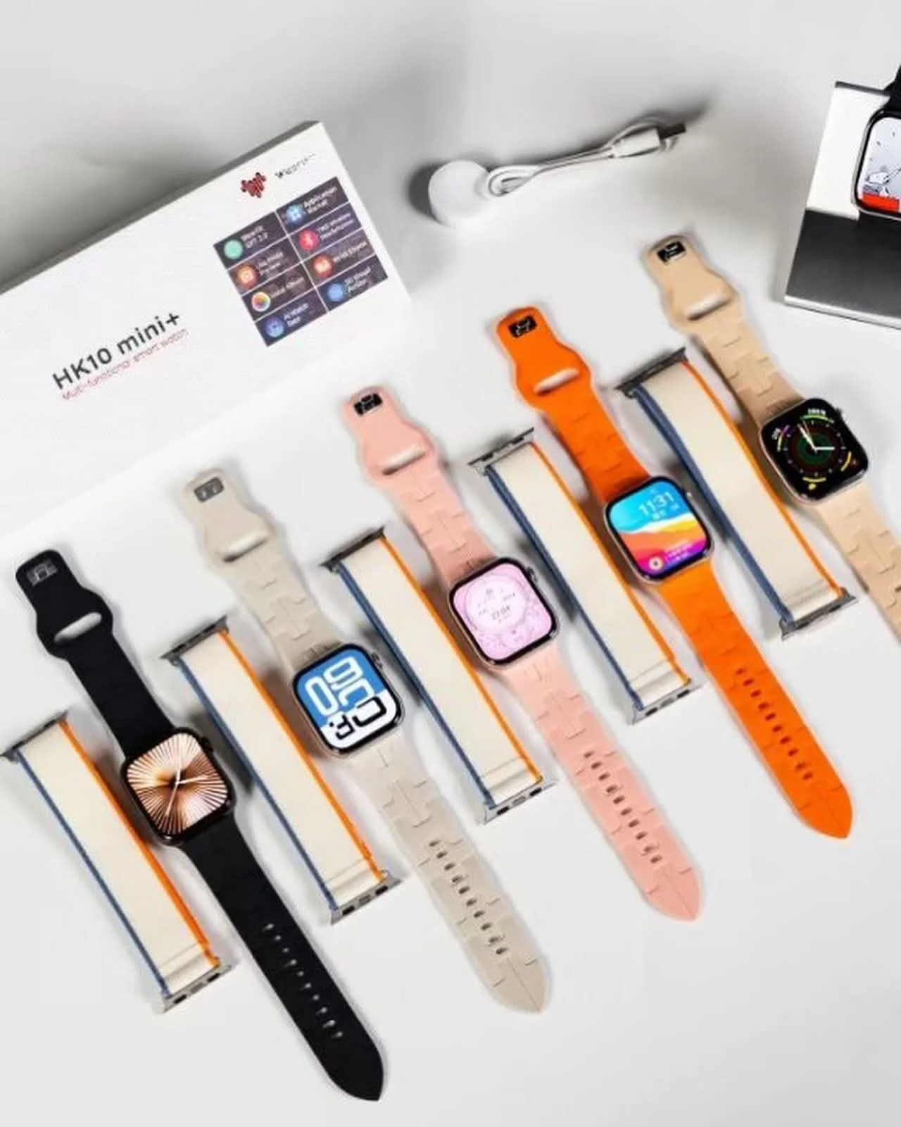 ساعة ذكية HK10 Mini+ * 1، حزامان، كابل شاحن لاسلكي، دليل المستخدم، وصندوق أصلي.